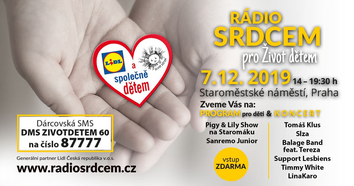 PRAHA: Velký charitativní předvánoční koncert „Rádio srdcem pro Život dětem“ proběhne v sobotu 7. prosince na Staroměstském náměstí. V rámci podvečerního koncertu vystoupí řada známých interpretů české hudební scény, v čele s hudebníkem Tomášem Klusem a kapelami Slza či Support Lesbiens. Na odpoledne je připravený zábavný program pro děti. Celým programem provedou moderátoři